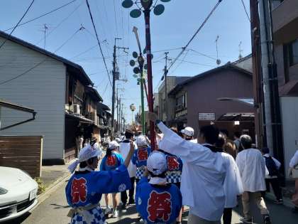 さわやかな五月晴れの中、今宮祭の神幸祭が行われ、乾隆小学校の3年生〜6年生の子どもたちが「こども鉾巡行」として参加しました。