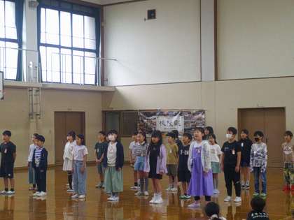 4年生は、4つの「お」について紹介してくれました。大きな運動場に、美味しい給食、面白くて優しい、お兄さん・お姉さん。素敵な乾隆小学校について教えてもらいました。その後、「小さな世界」を歌ってくれた4年生。最後の輪唱もきれいで、心のこもったやさしい音色を響かせてくれました。