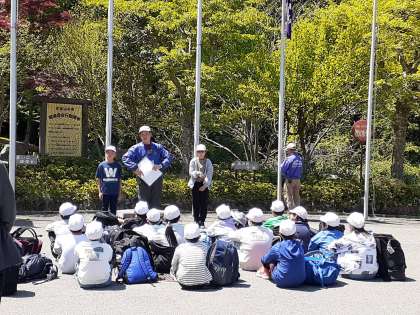 入所式では、校歌に合わせて旗あげをし、山の家の先生のお話を聞きました。
