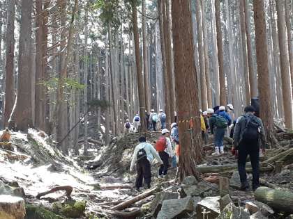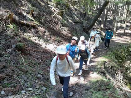 声をかけ合い、励まし合いながら登ります。途中で休憩も取りながら山頂を目指します。