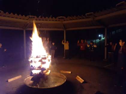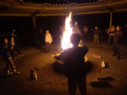 ゲームの盛り上がりとともに、炎も大きくなっています。