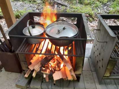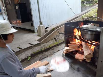 火おこし体験でおこした火も、順調に薪に燃えうつりました。