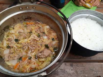 役割ごとに力を合わせ、すき焼き風煮とごはんの完成です!