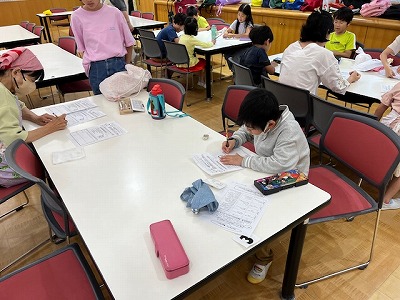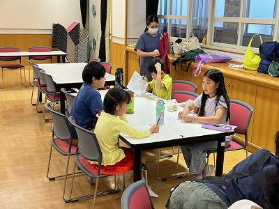「ごちそうさま」の後、テーブルの片づけをし、最後に今日の振り返りを行いました。
