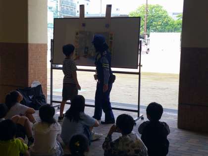 今年は、上京警察署の方や地域交通安全活動推進委員のみなさんに来ていただき、実際に自転車に乗る実技練習を行いました。
