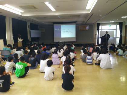 まずはじめに、全員合唱で「となりのトトロ」を歌いました。元気な歌声が響き、子どもたちからも楽しさが伝わってきました。