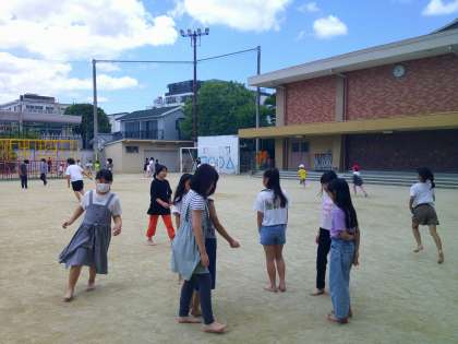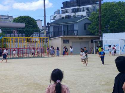 中間休みになると、はだしになって運動場へ。うれしそうにはだしで運動場に飛び出していく子、そろりそろりと一歩ずつ踏み出していく子など様々でした。