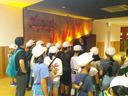 次に、運ばれてきたごみを焼却炉で燃やしていることについて教えていただきました。焼却炉では、900度以上の高温で燃やしていることを知り、とても驚いていました。