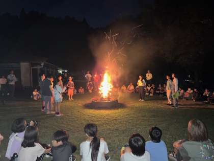 みんなで、ファイヤを囲んで、出し物を順番に披露していきます。それぞれの班で練習した成果を発揮し,大いに盛り上がりました。
