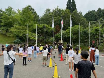 子どもも大人もしっかり体を目覚めさせ、この後の朝食をしっかり食べて、今日のプログラムも楽しみたいと思います。