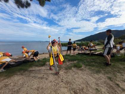 いかだに乗って楽しむだけではなく、最後の片づけまで責任をもってやり遂げることもこの宿泊のめあてです。片付けも協力して責任をもってやり遂げました。