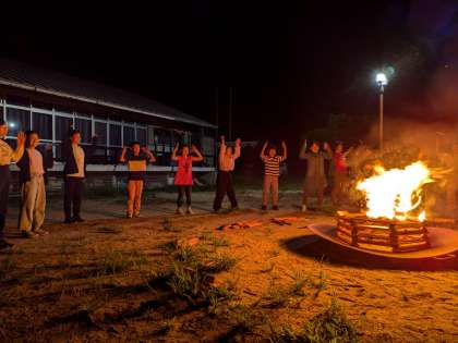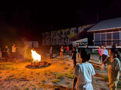 その後、キャンプファイヤーを囲んで、みんなでゲームをしたり踊ったりして楽しみました。
