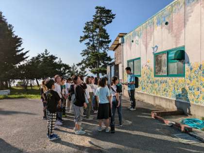 よく晴れて気持ちの良い空気の中、朝の集いをしました。少し秋の空気が感じられました。