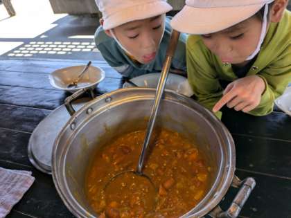 みんなで協力してがんばりました!思いがこもったカレーのでき上がりです。