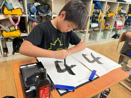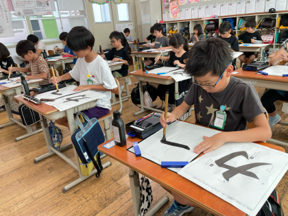 書写の学習では、「おれ」と「はね」に気を付けて、「力」を書きました。今までに学習した、始筆や終筆にも気をつけながら書きました。筆の運びが思うようにいかなくて何度も真剣に練習をしていました。力強い「力」が書けました。