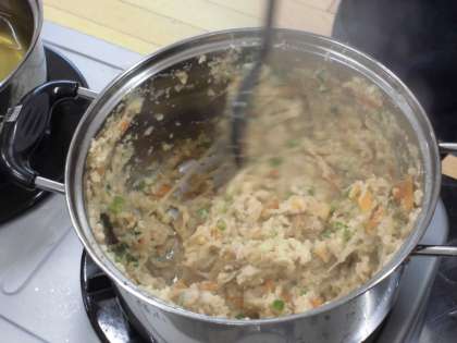 野菜が柔らかくなったら、おからの投入です。汁気がなくなったらねぎを入れてよく混ぜていきます。