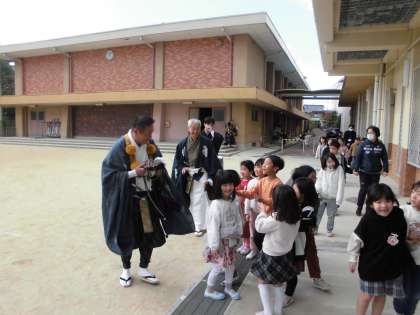 たくさんの質問にも丁寧にわかるように答えてくださったり、また教室へ戻る際にも演者の皆様は温かく声をかけてくださったりと、子どもたちは狂言への興味を持つことができたのではないかと感じています。