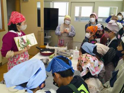 今日のメニューは、かぶのステーキ・菜の花のおひたし・豆腐とわかめのおみそ汁です。1年生から6年生まで17名の子ども達が参加しました。