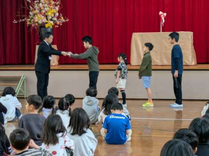 最後に、お話を絵にするコンクールで入選や佳作に選ばれた人に賞状を渡しました。次年度も、一人ひとりが色々な場面で力を発揮してくれることが楽しみです。