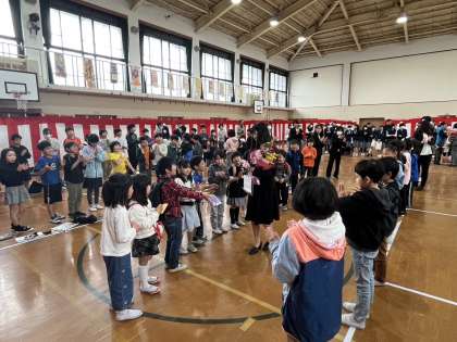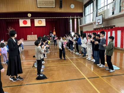 式の最後には、花道を作って離退任される皆さんを送りました。これまで当たり前に会えていた皆さんと会えなくなると思うと、涙が出てしまう子ども達もたくさんいました。お別れする教職員の新しい出発を応援する気持ちで、心を込めて笑顔と拍手で送りました。