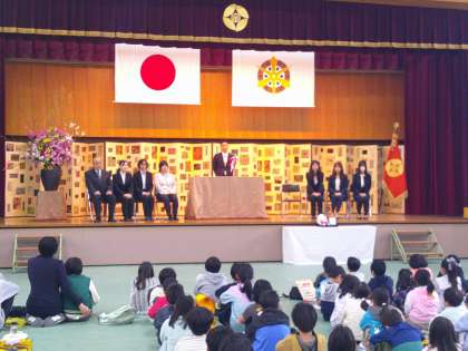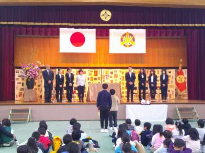 着任式は、9名の新しい教職員との出会いになりました。6年生が立派にお迎えの言葉を伝えてくれました。子ども達は新しい出会いに興味津々の様子でした。大人とも子どもともたくさんお話したり、活動したりして乾隆小学校の仲間になっていきたいです。