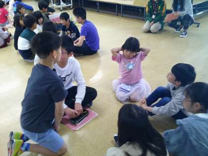 今日の1時間目は、全校児童が4階多目的室に集まって、たてわりタイムがありました。