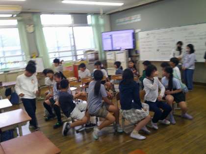 5年生の今日の中間休みは、遊び係さんが企画した椅子取りゲームなどをして楽しく過ごしました。