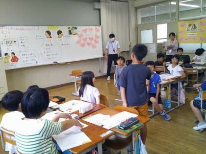 11日の5時間目は4年生の道徳科の授業『ちこく』を、乾隆小学校の教職員が見せてもらいました。