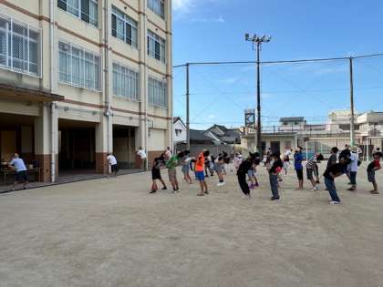 朝には、乾隆少年補導の皆さん、嘉楽少年補導の皆さんにお世話になり、ラジオ体操が行われています。