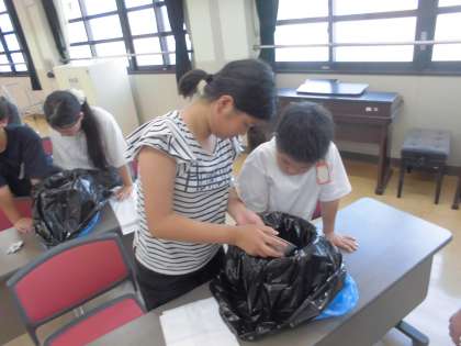 最後に、2人1組で「簡易トイレ」を作りました。