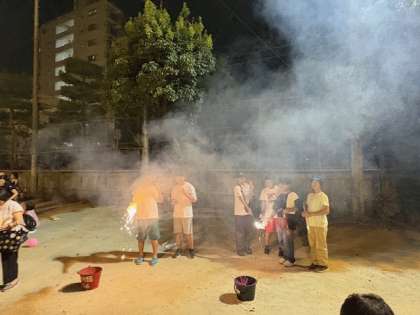 8月30日の土曜日の夜に、嘉楽中学校のグランドで、嘉楽学区少年補導委員会主催の「子ども花火大会」がありました。
