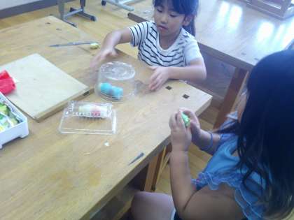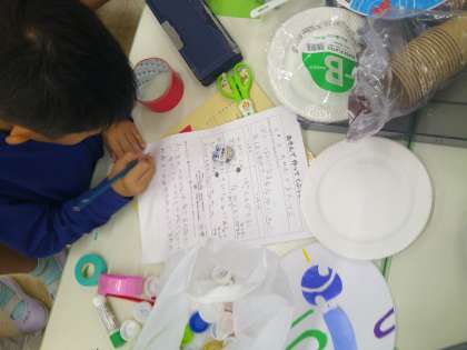 2年生は生活科の学習で、夏休み明けから廃材を使ってたくさん遊んできました。じまんのおもちゃになるように、何度も何度も作って考えて、作って考えてを繰り返しました。