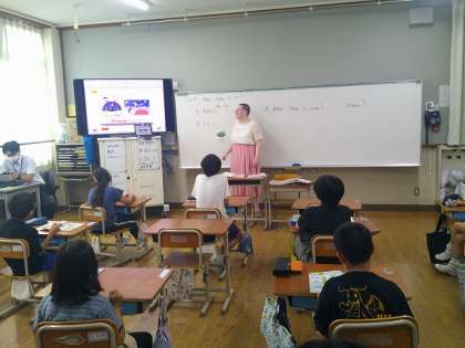 子どもたちは、食べ物や色、スポーツなどについて質問をすることができました。