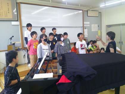 今日の6年生の音楽科の授業では、音楽専科の先生と一緒に、合唱の練習をしました。来週月曜日に控えた小中合唱交歓会に向けて、最後の練習になります。最後の調整をし、素晴らしい歌声が更に素晴らしくになりました。