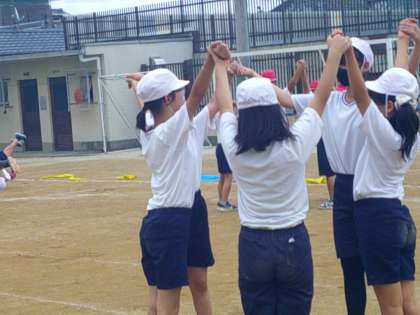 運動会に向けて団体演技の練習をがんばっています。今日は、入場から退場前の動きの通し練習を行いました。音楽を聴きながら友だちと一緒に合わせて練習する様子が見られています。練習が終わると練習動画で自分の動きを確認しながら次の練習に向けての目標や課題を考えながら学習を進めています。この学習でみんなで作ることの大切さや楽しさを味わって欲しいなと思います。