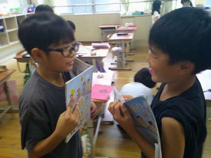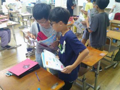 今日の4年生の外国語活動の時間には Unit5 『Do you have a pen?』の学習をしました。相手に伝わるように工夫しながら、文房具紹介をしました。