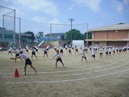 運動会の練習がはじまっています。今日は3・4年生の団体演技「ロックソーラン」と団体競技「台風の目」の練習です。みんな真剣そのもので練習をしていました。本番が楽しみですね!
