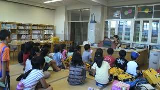 17日(火)の3時30分から図書ボランティアさんによる図書室の開放をしていただきました。「台風がきた」という紙芝居と「じしんの絵本」を読んでいただきました。みんな熱心に見ていました。ありがとうございました。