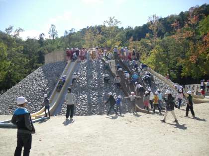 お弁当の後は,縦割りグループで自由遊びをしました。すべり台や遊具などで楽しんでいました。