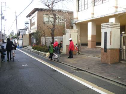 朝,子ども達が登校する時間帯,地域の方々に交差点や校門で見守り活動をしていただいております。「地域の子どもは,地域で育てる(守る)」今後もよろしくお願いいたします。