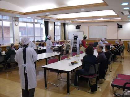 毎月第2土曜日,午前10時〜14時 ランチルームで「すこやか学級」が開かれています。すこやか学級には,子ども達も参加しており,地域の方々と交流をしています。今日のお昼のメニューは,ちらし寿司とおつゆ。みんなおいしそうに食べておられました。その後は,健康体操が行われました。これもまた,「地域の子どもは地域で育てる」の実践です。