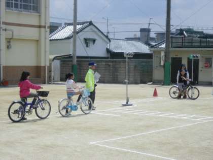 2〜4年生を対象に交通安全教室が開かれました。今回は、特に自転車の安全な乗り方について学習しました。指導者は、上京警察署と上京区交通安全推進委員の方々です。