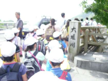 学校から北野白梅町まで約30分歩いてラン電に乗ります。嵐山までモンキーパーク目指してスタートしました。電車内ではやはり運転席の前にみんなが集まります。到着しました。