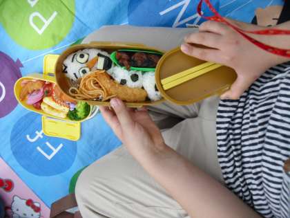 モンキーパークのある岩田山に登って、公園で遊んで降りてきました。ちょっと、疲れたけれどこれからお弁当です。楽しみのお弁当は……