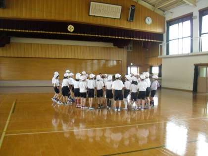 4年生は来週にみさきの家にいきます。今,みさきの家での活動の練習をしていました。キャンプファイヤーでみんなで楽しむマイム マイムの練習です。みんな楽しそうでした。来週が楽しみですね。