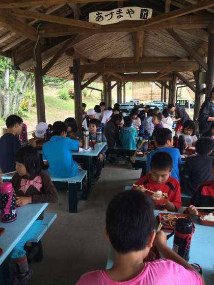 みさきの家に到着しました。まず「あずまや」で昼食をとりました。お弁当のメニューに子ども達の中から「めっちゃごちそうやん」という声が聞こえました。たくさん食べてね。