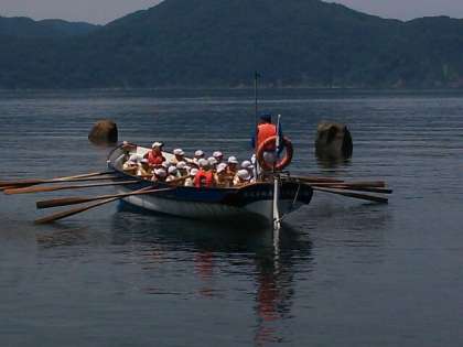 2日目最初の活動,カッター船の活動が始まりました。晴天です。波もありません。