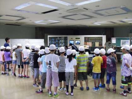 4年生が社会見学にいってきました。はじめに松ケ崎浄水場です。琵琶湖の水をきれいにして水道水をつくる過程を観察しました。たくさんの水槽におどろいたことでしょう。