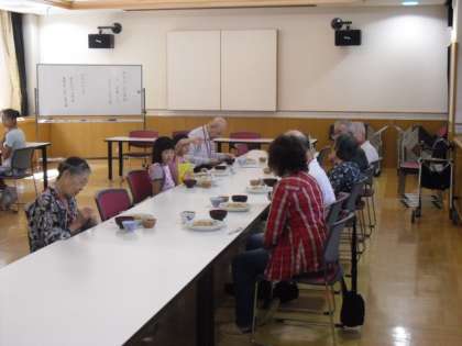 毎月第2土曜日には、乾隆ボランティアの会による「すこやか学級」が開かれています。子ども達も毎回参加しており、地域のお年寄りの皆さんと楽しい一時を過ごしています。ボランティアの皆さんに教えていただきながら、一緒に食事の配膳やゲーム、ものづくりをしています。