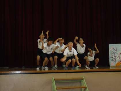 みんなと力を合わせて大きなまぐろに立ち向かうスイミーです。歌やおどりもすてきでした。